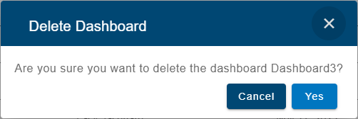 3. Click Yes to perform the deletion. The dashboard button is removed from the dialog box and the Dashboard screen. 4. Click Close to close the dialog box. |