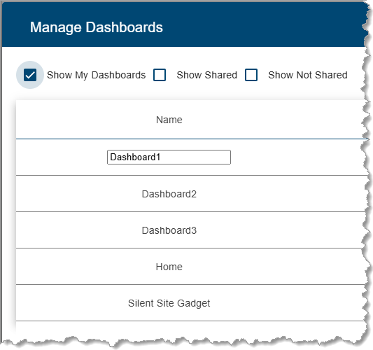 • Show Not Shared: This option will display only the dashboards of the current user that are not marked as shared.