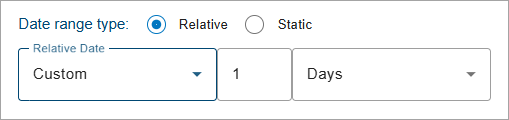 • a relative time period, such as This Week or This Month. This option also allows a custom number of days, month, years, etc. to be specified for the range.