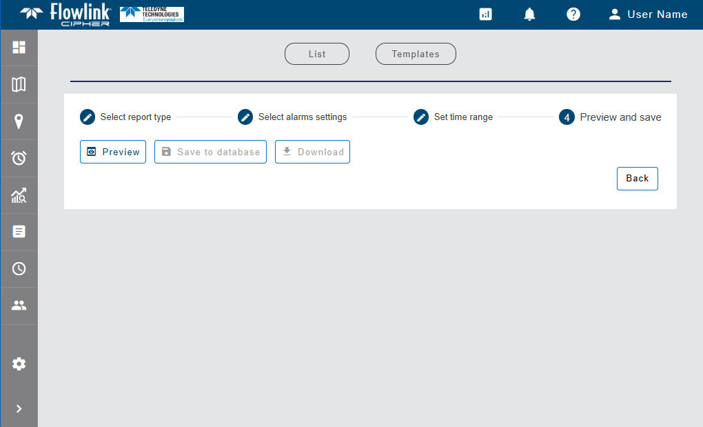 Step 4 of the process is used to preview the report and then save it to the database and/or export it to PDF or CSV format. The Save to database and Download buttons will not enable until a preview has been generated. The preview allows the report settings to be adjusted if needed before creating the final report.